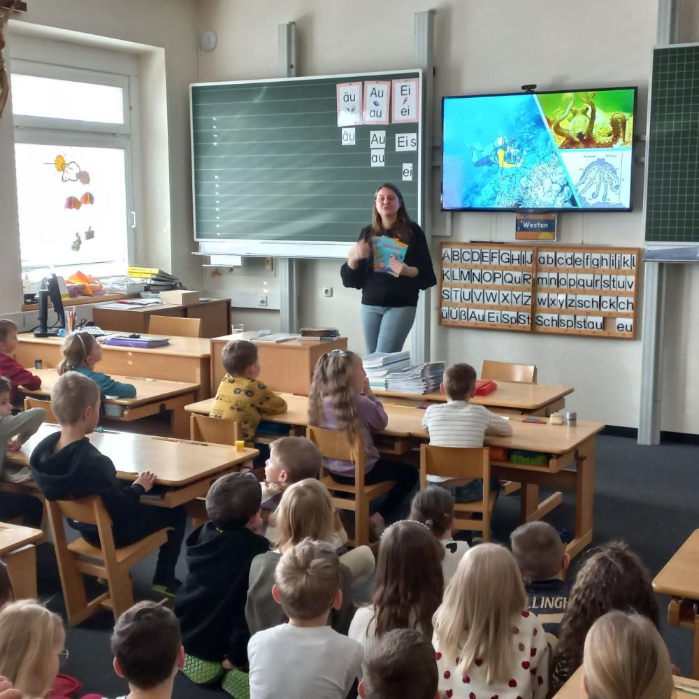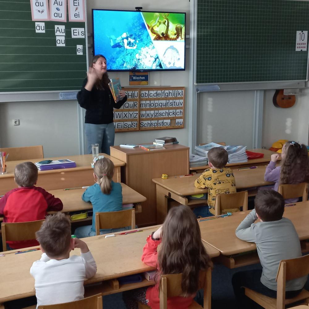 Die Schülerinnen und Schüler waren sehr interessiert und hörten aufmerksam zu. Eine nette Stunde, um in die Welt des Meeres einzutauchen.
